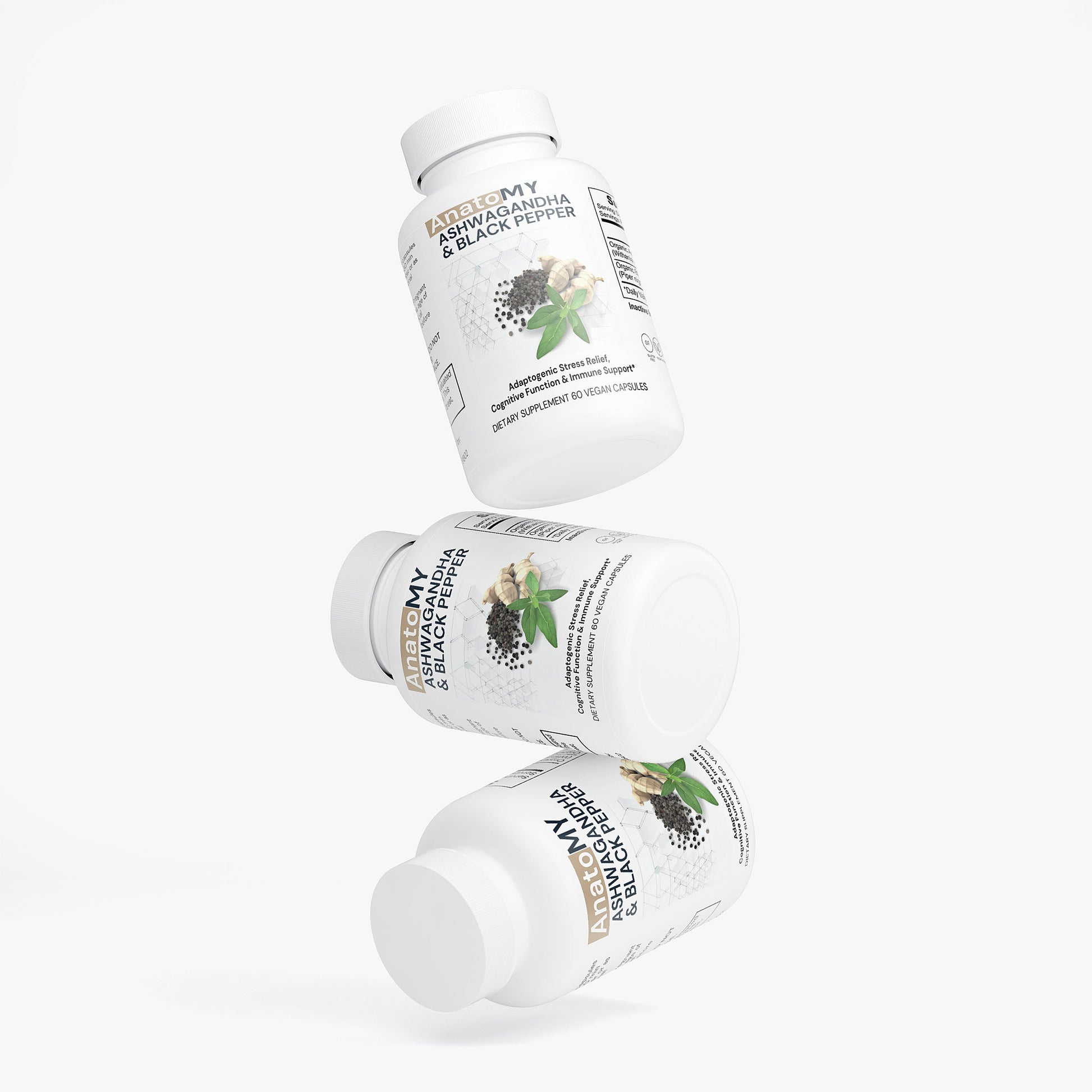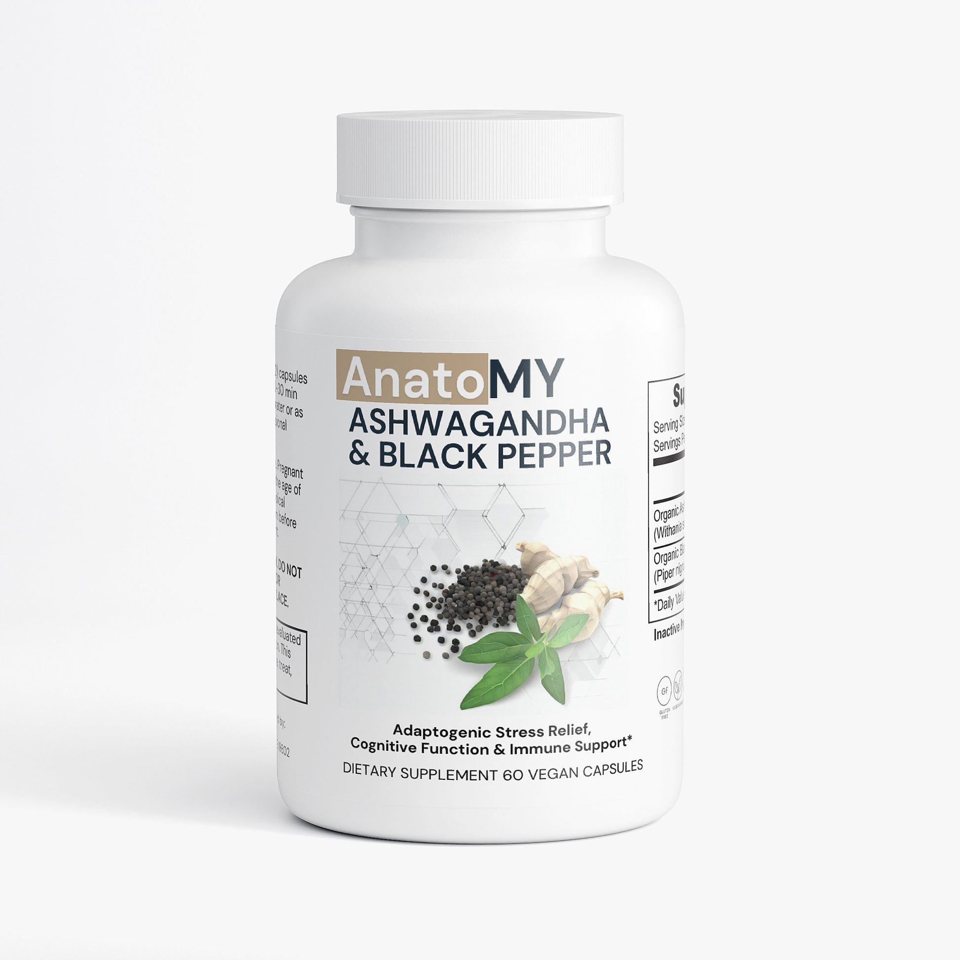 Ingredients: Organic Ashwagandha (Withania somnifera)(root), Organic Black Pepper (Piper nigrum)(fruit), pullulan capsules.