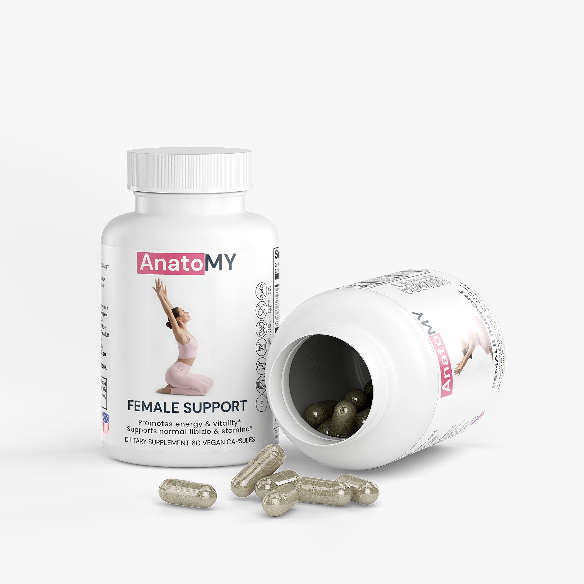 Empower your day, every day, with Female Support. This supplement is designed to help women thrive. This advanced formula targets common concerns like Low Energy, Anemia, Mood Swings, Hormone Imbalances, & Bloating, helping you reclaim your vitality and comfort.